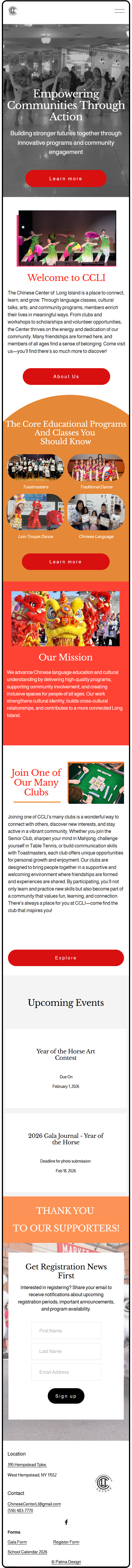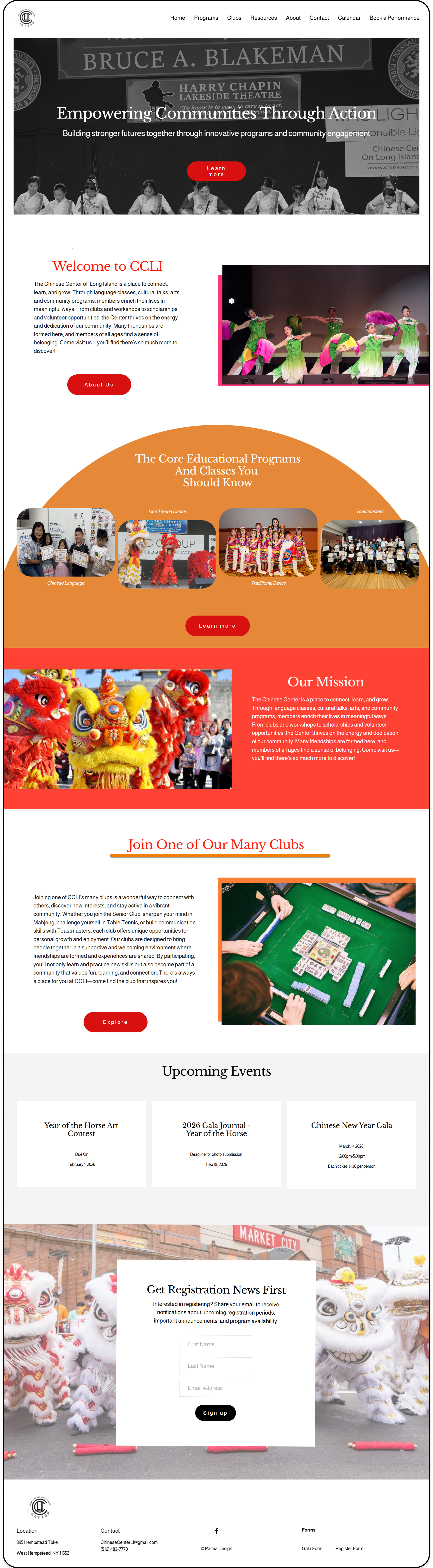 The Chinese Center of Long Island provides language education, cultural programming, clubs, and community events for people of all ages. This site allows visitors to explore classes, register for programs, stay informed about upcoming events, and get involved in cultural initiatives across Long Island.
